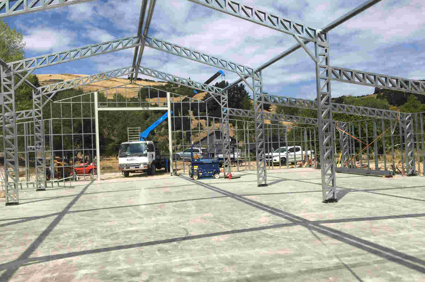 In March 2020 Central Steel Framing constructed a 625m² Heritage Barn in Taupo. The client came to us with their barn concept and together we developed and engineered a custom designed barn. The light gauge steel barn was built using portal frame construction. The manufacturing and installation of the barn was quick. The steel was assembled in the workshop and erected onsite. Only two truckloads were needed to transport the profiles/pre-assembled panels to the site. It only took 24 hours to install the portals and external walls onsite.